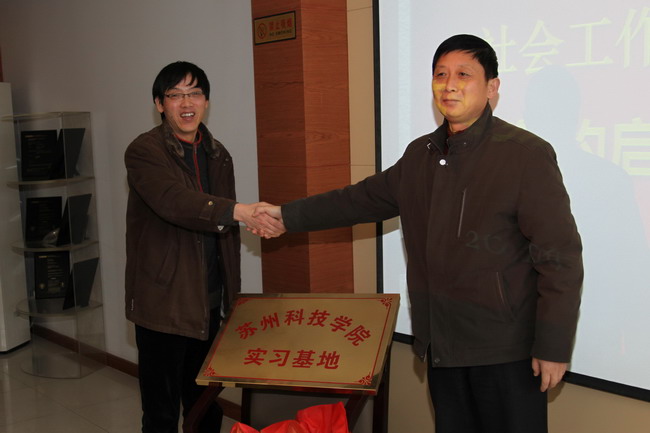 仪式由市社会福利院副书记、副院长张陆主持。科技学院社会学系主任朱爱华首先就本合作项目概况做介绍。此合作项目将成立一个合作组织,即合作项目管理委员会;建立四个基地,即专业实习基地、社会实践(志愿服务)基地、社会工作研究所、社会工作者成长基地;形成四套机制,即专业实习管理机制、志愿服务管理机制、科研活动管理机制、专业成长促进机制。