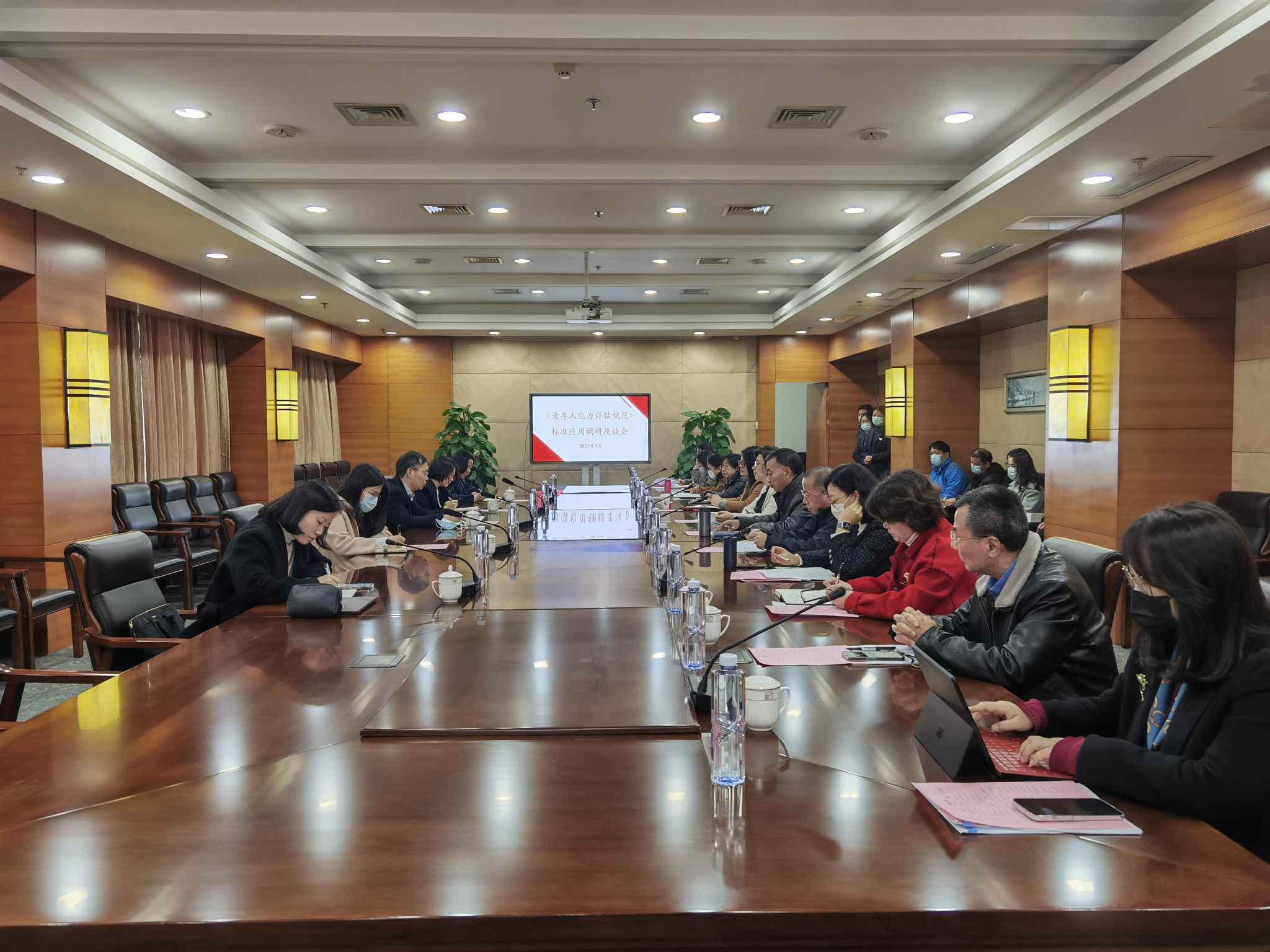 为做好《老年人能力评估规范》推荐性国家标准宣贯推广工作,3月1日下午,《老年人能力评估规范》标准应用调研座谈会在市社会福利总院召开,民政部社会福利中心党委书记、主任甄炳亮,标准化服务部负责人陈曦,江苏省民政厅养老服务处处长林莉、副处长刘蓓,苏州市民政局副局长芮静珈,总院党委书记、院长顾彩娟等出席会议。