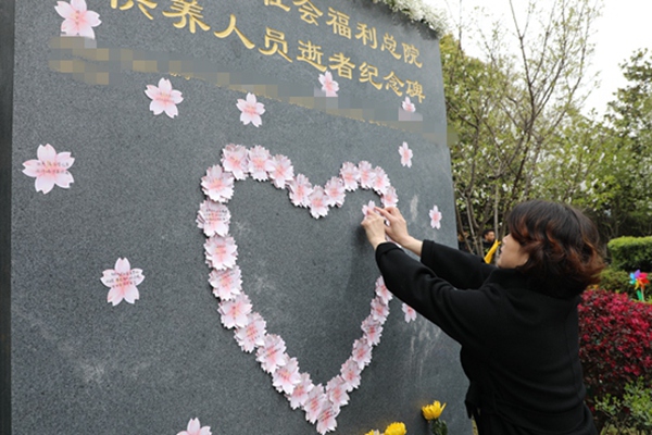 在国家民政部倡导推广绿色殡葬的大背景下,前期我院与吴中区木渎镇山陵文化产业管理委员会协调,在凤凰公墓南四区的市级绿色殡葬纪念园内设立可降解葬专区安葬我院“三无”供养逝者。在今天的仪式上,共有12名“三无”供养逝者的入葬,参加仪式的全体工作人员为“三无”供养逝者默哀,并精心准备了祈福语贴花,粘贴在镌刻着“三无”供养逝者名字的纪念碑上,还献上了鲜花和风车,今后总院每年将组织党团员开展祭扫活动。