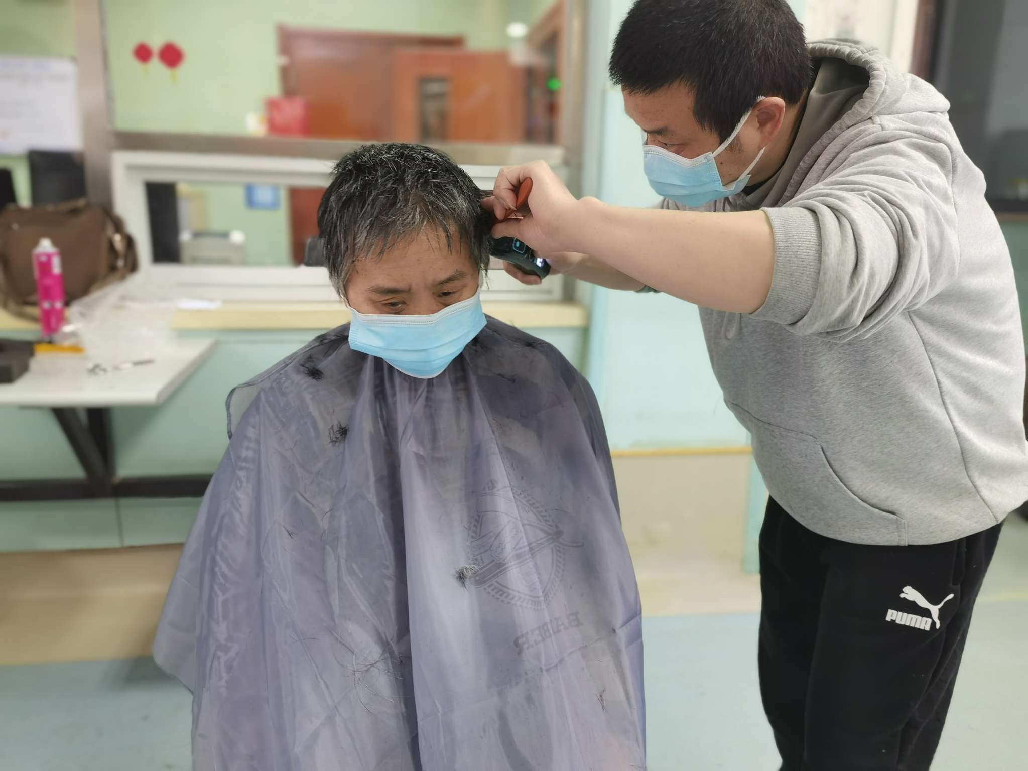 “小洋上手可真快,看来有一定的理发基础嘛。”理发师张师傅面对面、手把手地为小洋讲解和演示理发的技巧,看着小洋专心致志地练习,张师傅直竖大拇指。小洋(化名)也是残福中心的一名养护对象,而且他是一名“老师傅”了,三年常态化封闭管理,养护对象的理发均由内部职工完成,小洋虽是一名聋哑人,但动手能力一点不差,在残福老师的带教指导下,他很快成长为一名“兼职”理发师。勤学上进的他还想学习更高端的理发技术,于是院内特地邀请了专业理发师给予小洋更专业指导。待小洋学成后,他将为总院四大中心的服务对象提供理发服务。