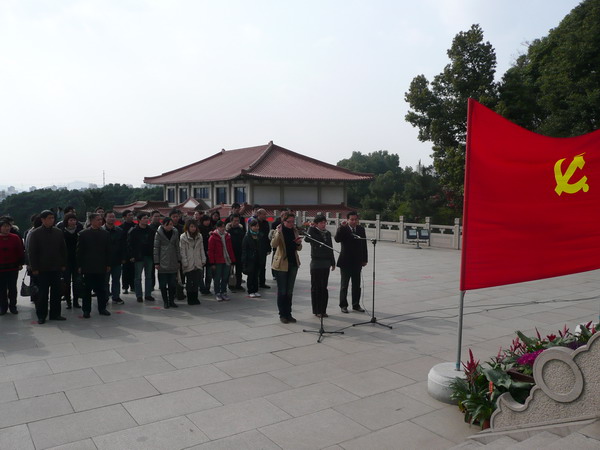 全体党团员在革命烈士墓前默哀并向烈士敬献花圈,以最庄严肃穆的形式表达我们对革命先烈的无限崇敬和深切哀悼。在巍峨的纪念碑下,新入党的同志面对鲜红的党旗,高举右手,进行了庄严的入党宣誓。