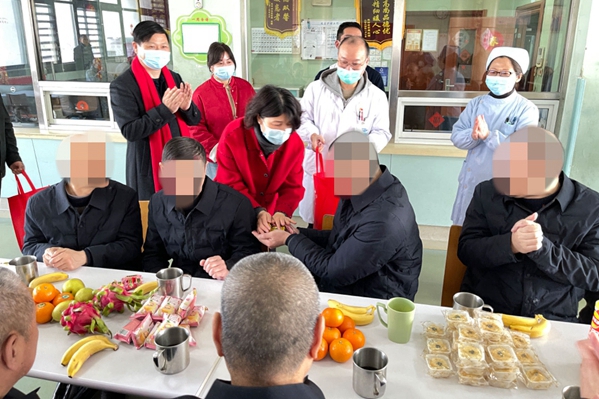 顾院长一行深入一线,慰问奋战在总院各个条线的工作人员,向他们送上新春祝福,勉励大家在新的一年里再接再厉,为福利总院各项工作高质量发展贡献力量。春节期间,院领导分别前往老年福利中心、儿童福利中心、精神病福利中心和残疾人福利中心给服务对象们拜年,分发象征喜庆、吉祥的各类糖果,并祝愿大家身体健康、万事如意。