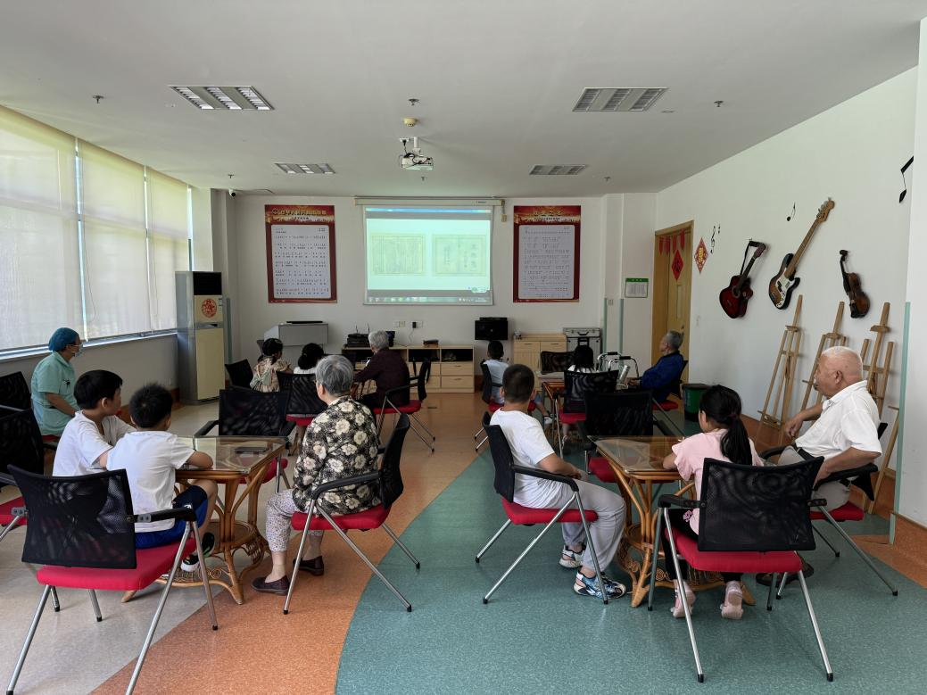 下午2点,活动正式开始。工作人员首先播放了福利总院的宣传片,让孩子们简要了解我院。随后,孩子们和老人们共同进行破冰游戏,在欢乐的气氛中互相介绍。虽然年龄相差悬殊,但一声声“爷爷奶奶好”、“小朋友你好”迅速拉近了他们之间的距离。