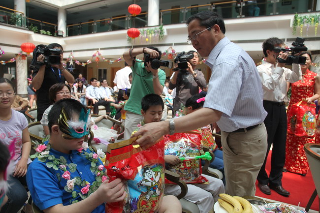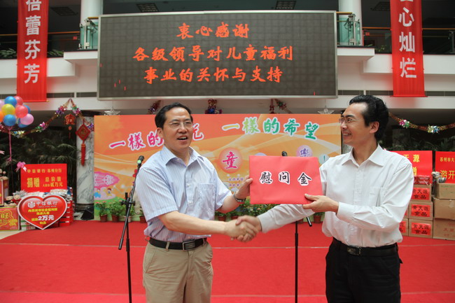 民政局党委书记、局长林超亲自为我院孩子们送上节日慰问金。民政局庞剑萍副局长向全院小朋友致以节日的祝福,并倡议社会各界为孤残儿童奉献更多的爱与关怀。中信银行苏州分行俞子彦副行长也代表爱心单位发表了热情洋溢的讲话。我院孙惠忠院长对市、局领导以及社会各界一直以来对我院的关心和帮助表示衷心感谢。