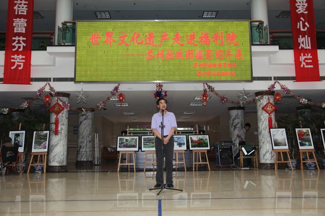 6月26日下午“世界文化遗产走进福利院——苏州拙政园摄影图片展”启动仪式在我院多功能厅举行。