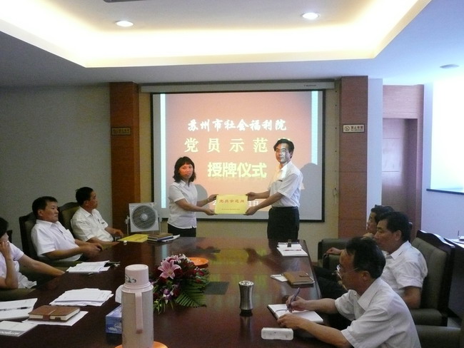 授牌仪式由总支副书记张陆主持,总支书记、院长孙惠忠为评定的“党员示范岗”授牌,此次“党员示范岗”评选活动反响热烈,共有7个岗位参评,经过自主申报、民主投票、在职支部考察、总支审定、公示等层层程序,办公室和儿康部早教班获得殊荣,在全院掀起了争示范、学示范的创先争优热潮。