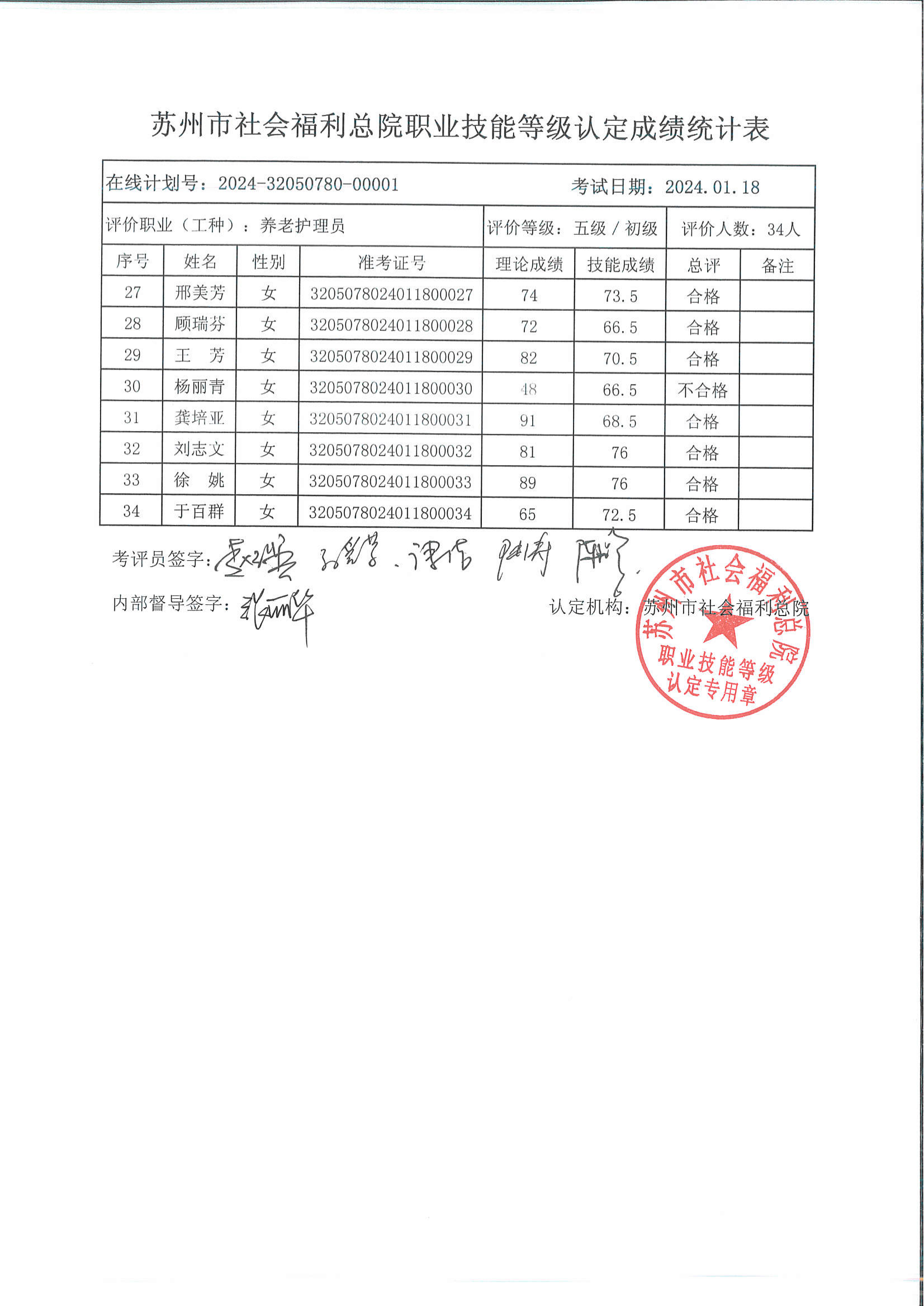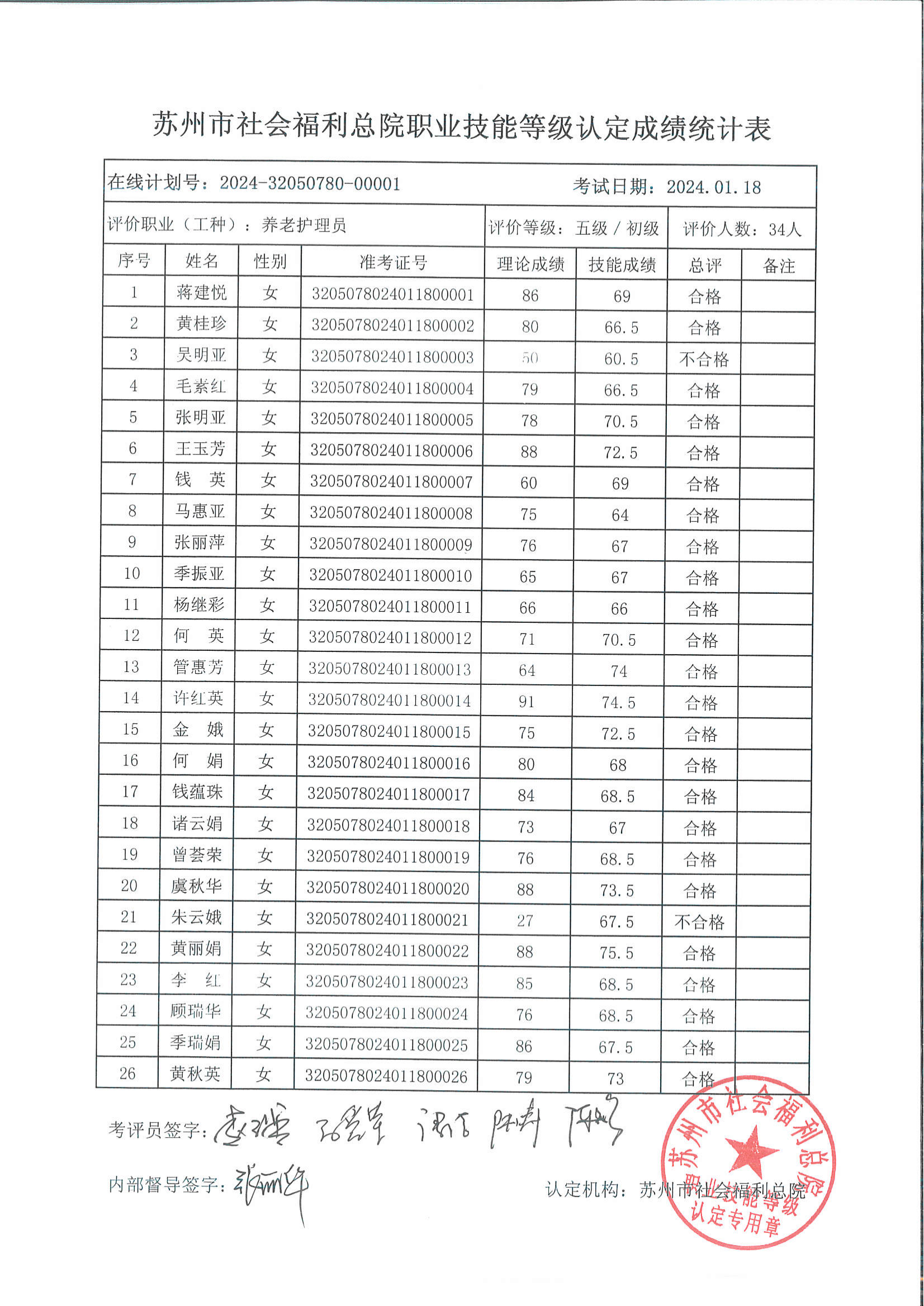 成绩公示日期:2024年1月19日-2024年1月25日。公示期间,考生如有疑义,可向苏州市社会福利总院申请成绩复核。