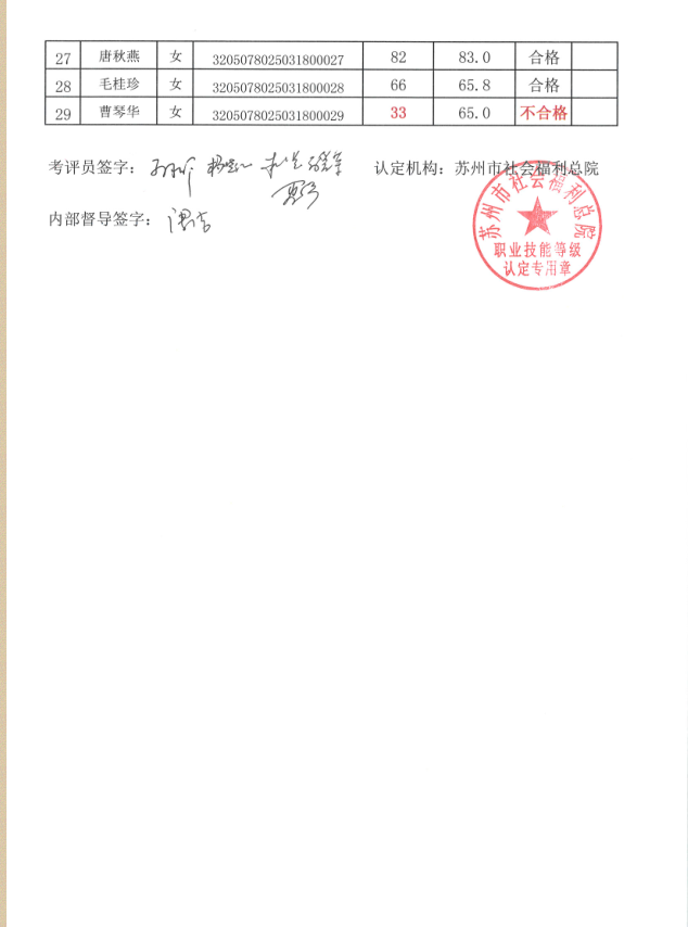 苏州市社会福利总院职业技能等级认定成绩公示(3.18)