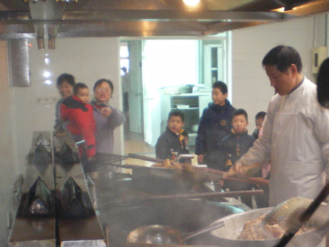 食堂的师傅们给小朋友介绍了菜肴的制作过程,现场演示了烹饪操作,在确保安全的前提下,让孩子们体验了食堂的烹饪工具。老师们也充分利用这次实践机会,为特教班孩子们介绍了各种蔬菜水果的名称和特点。因为是第一次看到食物的制作过程,孩子们显得特别好奇和兴奋,在老师的指导下,他们认真地听,仔细地看,最后还穿上小围裙,带上小袖套当起了小厨师,和特教老师们一起包馄饨、做午餐。中午,吃着自己亲手包的馄饨,孩子们一个个笑开了花。