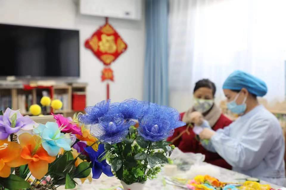 中心内的活动也是精彩纷呈。精神病福利中心内的休养员们逛集市猜灯谜品美食,300多个谜语在10分钟内被破解一空,让人赞叹不已。残疾人福利中心里的“折翼天使”们围坐在一起,在护理员的陪同下,巧妙地串着珠串兔子和编织丝网花,用自己的劳动收获祈福祖国繁荣昌盛!
