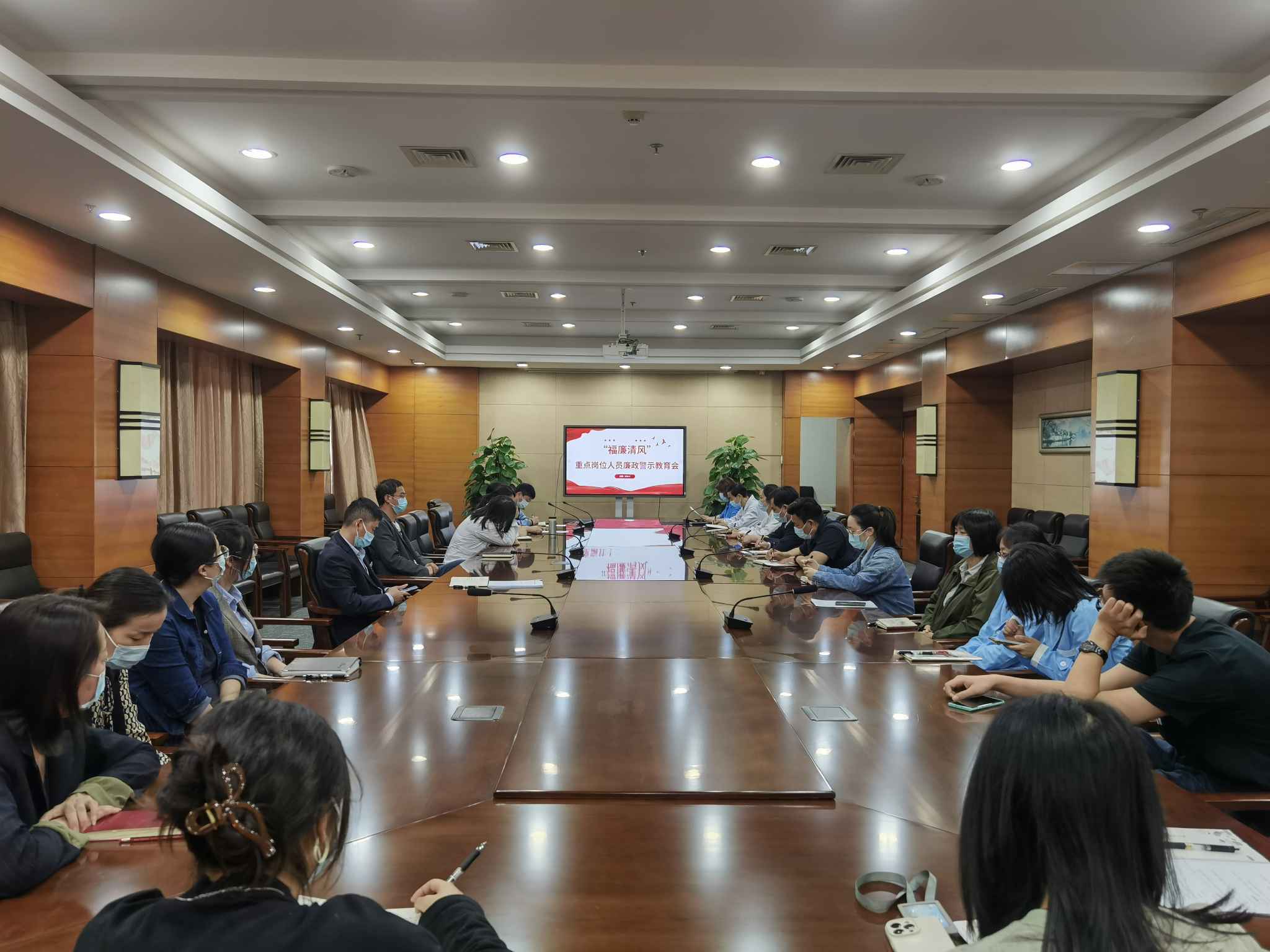 为进一步提高重点岗位人员的廉洁自律意识和拒腐防变能力,持续营造总院风清气正的干事创业氛围,4月20日上午,总院纪委召开了“福廉清风”重点岗位人员廉政警示教育会,全体纪委委员,人事、财务、采购等20余名重点岗位人员参会,副院长、院纪委委员李磊主持。