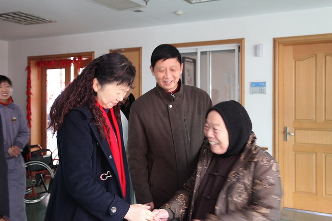 在老年病医院,庞局长关切地拉起老人们的手嘘寒问暖,严院长和局领导一起把一份份象征喜庆与幸福的糖果送到老人们手中。来到护理部时,正逢老人们围坐在一起看电视、做游戏。看到局领导冒着寒风大雪专程前来慰问,老人们感动不已,不约而同鼓起掌来。在儿康部,望着孤残儿童们天真快乐的笑容,局领导和院领导倍感欣慰,他们一起鼓励孩子们努力学习,祝愿孤残儿童健康成长。庞局长向春节期间仍坚守岗位的工作人员表示慰问和感谢,叮嘱大家一定要照顾好老人和孤残儿童孩子的生活,让他们过上一个快乐、和谐的春节。