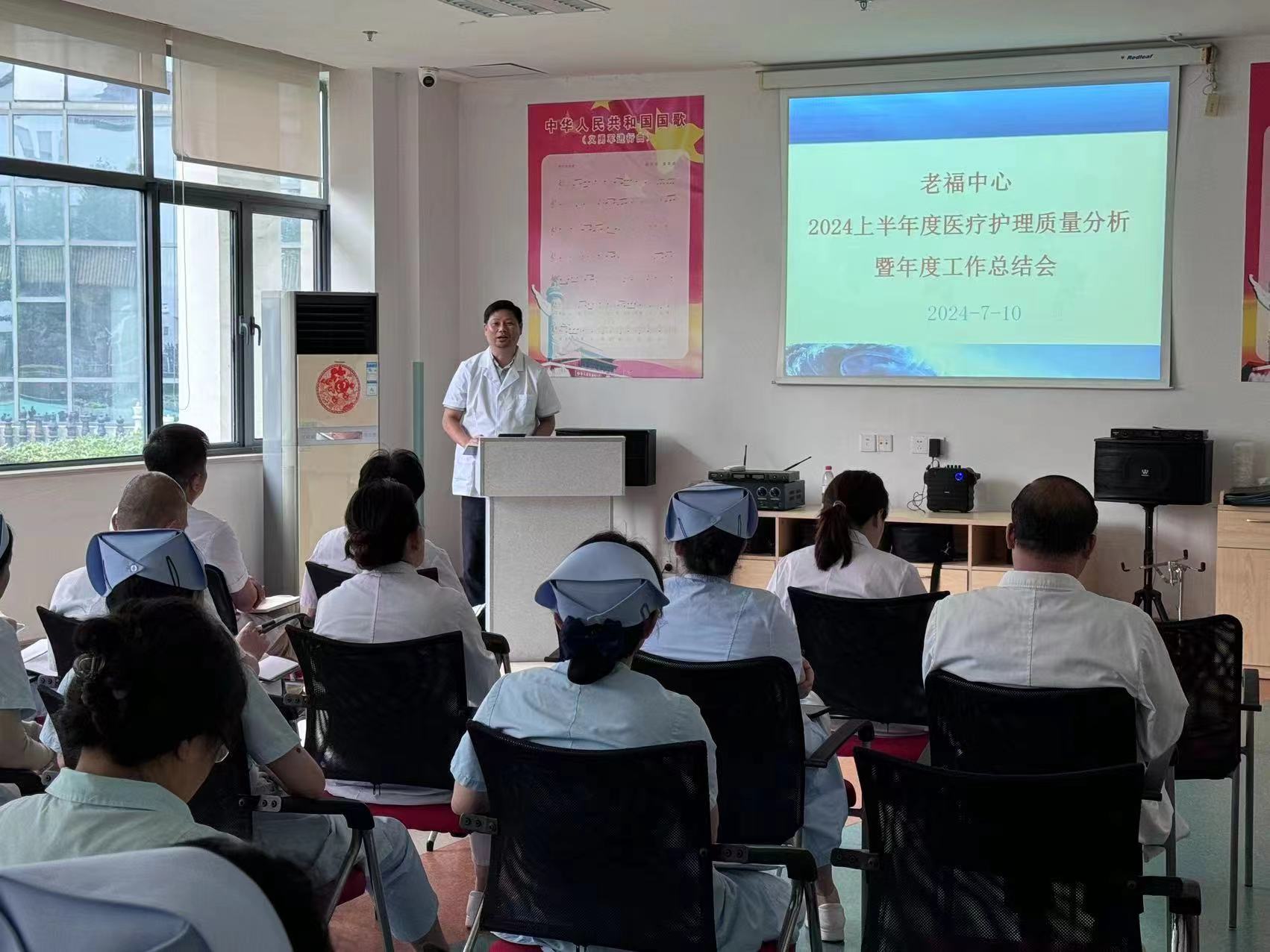 7月10日,老福中心组织开展2024上半年度医疗护理质量分析暨年度工作总结会。本次会议由老福中心负责同志主持,总院惠志华副院长、医康科负责人和护理部负责人莅临现场指导,老福中心全体职工参与会议,大家共同回顾了上半年中心的医疗护理工作,并对医疗护理质量进行了深入分析。