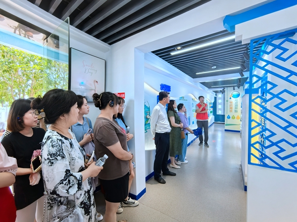 相城区节水教育基地位于黄桥街道青苔国际工业设计村北侧黄花泾船闸内,是相城区首个互动式节水科教体验活动场所,2023年8月成功入选“相城区第三批干部教育培训现场教学点”。本次参观特别邀请到相城区水务局的工作人员现场为总院职工讲解,讲解员从相城区水系图、伍子胥建城开河、人与水的关系、水的重要性与稀缺性、生活节水知识、水资源重复利用等方面进行了细致的讲解,通过微型“鱼菜共生”系统模型、“生态浮岛”、“海绵城市”等模型演示强化对于节水理念的认识,除了知识点的讲解外,还借助户外落水系统、室外实践互动区、种植区展示了节水理念在生活工作中的实际应用。此外,相城区水务局也向后勤管理科了解我院节水工作的开展情况,并对工作提出了建议。