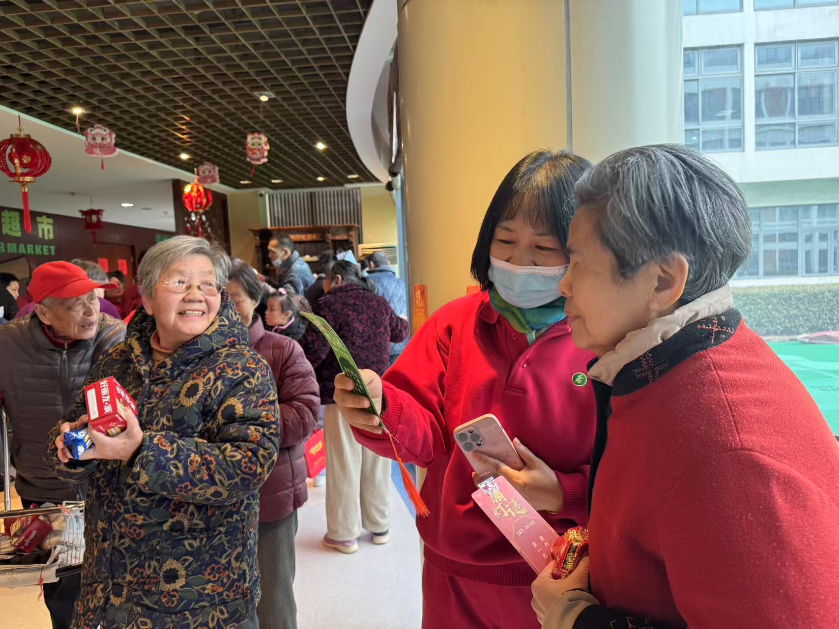 当天下午,老福中心茶吧热闹非凡,彩灯如云,服务对象在工作人员和志愿者的陪伴下,纷纷聚集于此,共享这份传统节日的欢乐。活动现场,工作人员和志愿者们精心布置了花灯、灯谜和精美的糖果。印有谜面的彩条随风飘荡,吸引大家驻足围观讨论。各种有趣的灯谜引得大家争相猜测,笑声不断,猜到答案的喜出望外,猜不到则冥思苦想。很快一条条谜底被纷纷猜中,志愿者给大家颁发了小奖品,老人和孩子们拿着丰盛的奖品,喜笑颜开。