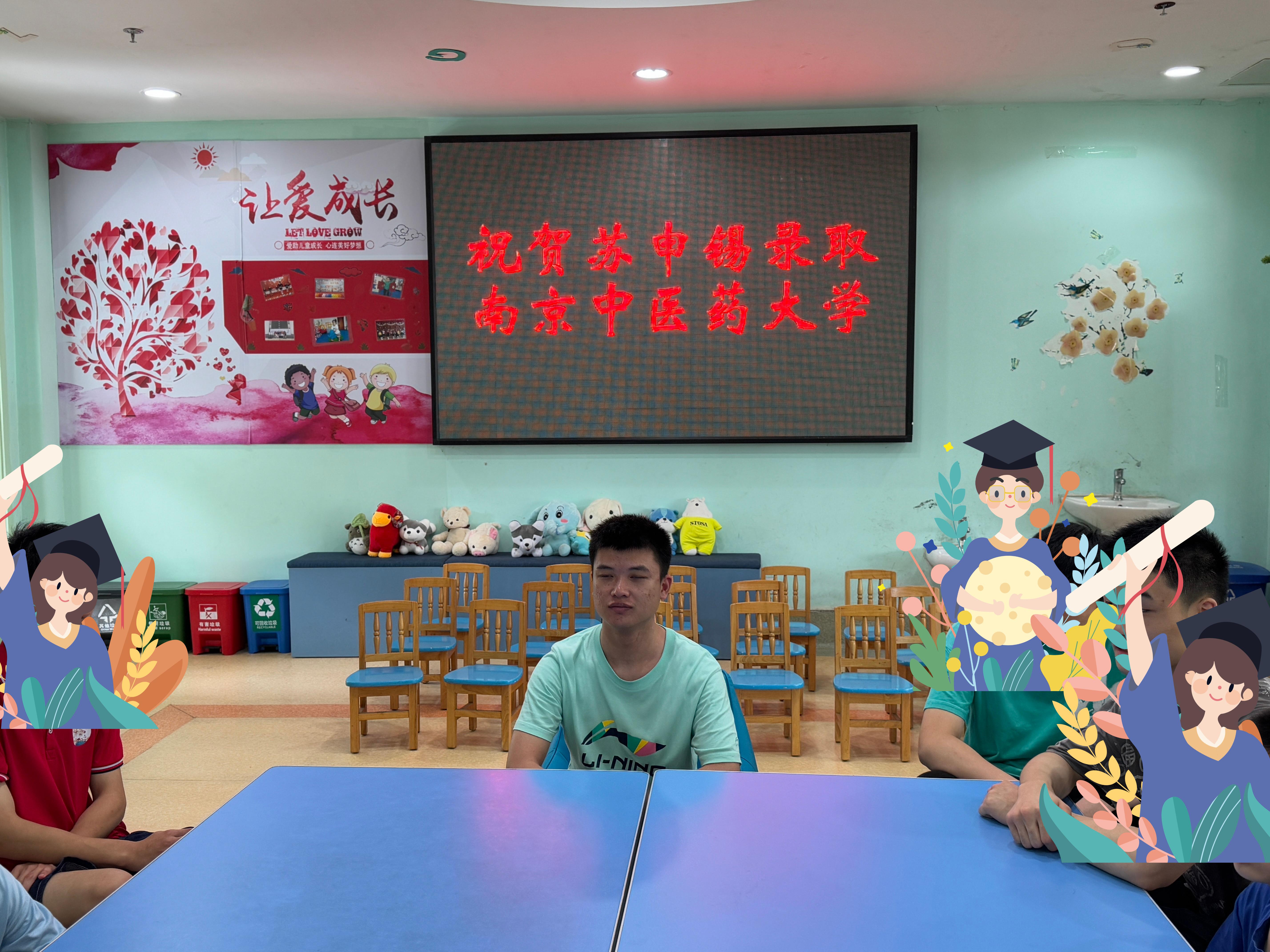 “学习没有捷径,但一定有方法。”庆祝活动的第二环节中,苏申锡为儿福中心的弟弟妹妹们分享自己的成长心得。他从时间管理、错题整理到心态调整,细致地解答孩子们的问题。10岁的儿童小安听后兴奋地说:“锡锡哥哥说要整理好自己的错题本,我明天就试试!我也要考大学!”