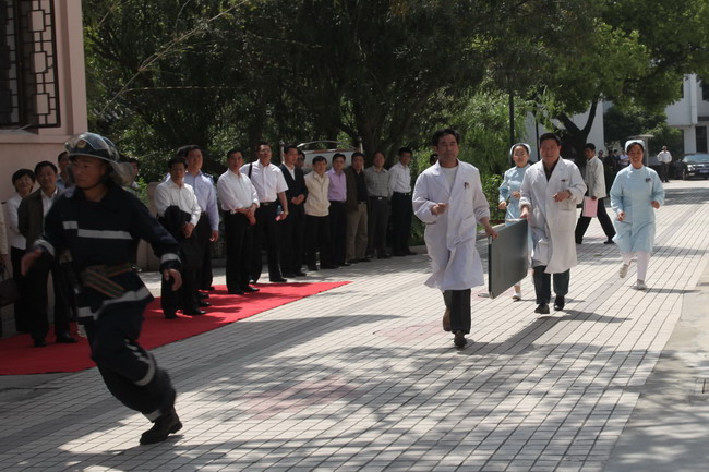 为迎接我国第二个“防灾减灾日”,全力推进防灾减灾和应急处置工作,根据苏州市“防灾减灾日”活动总体部署要求,5月12日上午,我院举行灭火和紧急疏散实战演练。副市长周玉龙、市民政局局长林超、副局长庞剑萍、市减灾委和市30个部委办局领导来院检查观摩演练情况,并对演练结果给予高度评价。