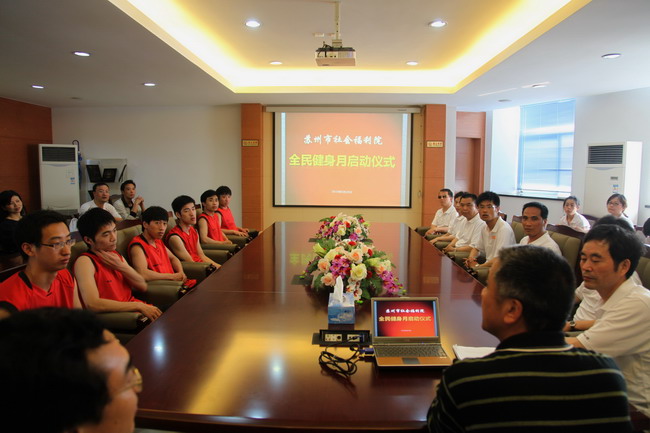 副院长、工会主席张庆祥主持了启动仪式,孙惠忠院长在启动仪式上对新成立的乒乓球、羽毛球、篮球三支运动队提出了殷切希望,孙院长指出,三支运动队伍的表现就是福利院精神的体现,是福利院精神风貌的一种集中展示,开展健身运动贵在坚持,希望全院干部职工积极投身全民健身月各项活动,讲精神、重形象,真正体现苏州民政人的素质。