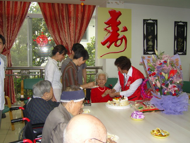 5月28日下午,二病区活动室传来阵阵掌声和欢笑声,二病区医护人员、部分老人、家属以及苏州供电公司的志愿者们欢聚一堂,为百岁老人杨阿婆恭贺寿诞。