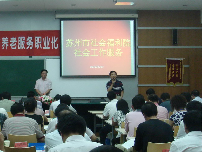 6月27日,民政部管理干部学院和培训中心在京为北方省区民政厅、局长和福利院院长举办了为期四天养老机构养老服务培训班,邀请我院2名专家前往讲课。课后,主办方对我院的评价是:“老年社工的一面旗”,并勉励我们当好旗手。