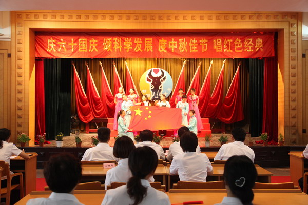值此祖国六十华诞之际,9月29日,我院在多功能厅举行了以“庆六十国庆 颂科学发展 度中秋佳节 唱红色经典”为主题的红歌会,各科室、部门的参赛团队和个人用一首首振奋人心的经典爱国曲目为祖国六十岁的生日送上福利院人最诚挚的祝福。歌会也把我院此次庆国庆系列活动推向了高潮。