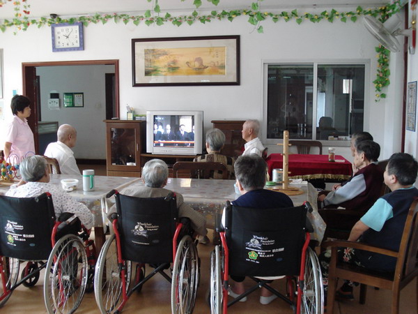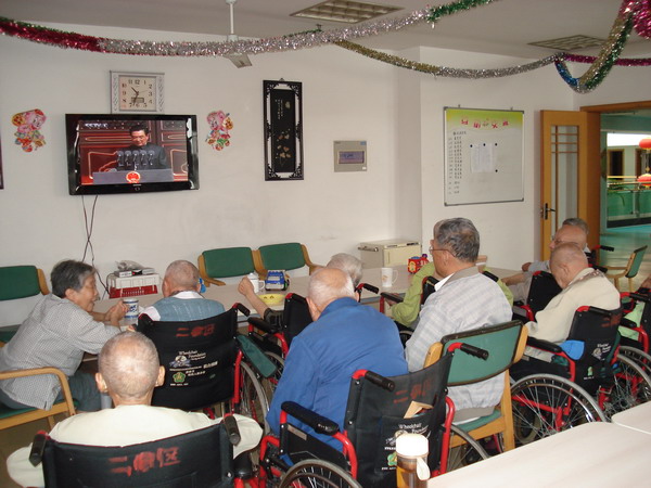 节目开始前,公寓部90多岁的黄奶奶就激动地说:“60年,祖国的繁荣与富强在阅兵和庆典上将集中展示,非常期待,也非常自豪!”节目播放过程中,解放军徒步方队整齐划一的动作,装备方队先进高端的武器,群众方阵热情欢快的舞蹈都赢得了老人、小孩们的阵阵掌声。