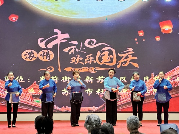 中秋、国庆佳节将至,9月27日下午,娄葑街道新苏社区新月艺术团的志愿者们来到了苏州市社会福利总院,带来了一台精彩的文艺演出,与院内服务对象们欢聚一堂,共庆双节。