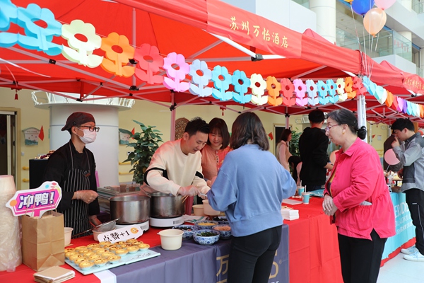 活动现场香味扑鼻、热闹非凡,各种美食让人眼花缭乱、垂涎欲滴,有苏州特色的苏式糕点,有现场制作的烧麦、小馄饨,还有孩子们喜爱的炸鸡、薯条。老人、孩子和院内残疾人纷纷表示在福利院里还能品尝到如此品种丰富的美食,瞬间涌起了满满的幸福感。
